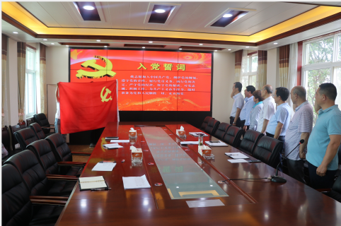 最后,全体党员面对党旗,重温入党誓词,牢记入党初心。