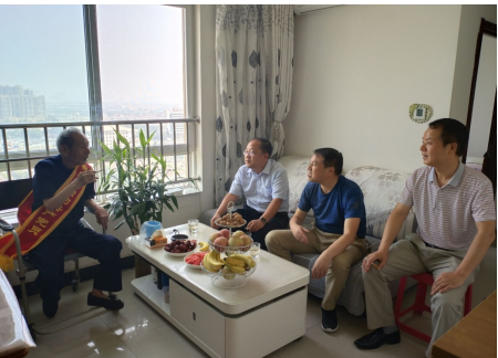 七一前夕,公司党委书记、总经理白慧同志带领副总经理吴锋、焦红雁及党群部工作人员分别走访慰问了白忠厚、任生辉、李文学三位离退休老党员,详细询问了他们的身体状况,了解他们的家庭近况及需求,并为他们带去慰问金和慰问品,把党组织的温暖送到他们的心坎上。
