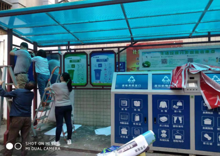 2019年9月23日下午,随着垃圾分类投放亭主体工程的完工,为期尽一个月的垃圾分类工作终于告一段落。