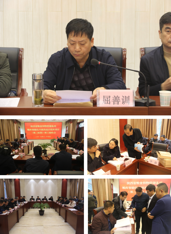 2019年11月5日,陕西粮农杨凌储备库有限公司粮库智能化升级改造项目由陕西省粮库智能化升级改造省级示范库、省级库项目验收工作组进行了验收。验收会议在杨凌库中控室举行,由省粮食和物资储备局总工程师、全省粮库智能化升级改造省级示范库、省级库项目验收工作组组长屈善训主持,验收工作组成员、陕西省储备粮管理集团有限公司纪委书记郭建刚、陕西粮农集团信息中心主任解玮峰、项目建设、施工、监理等单位负责同志,有关技术专家等16人参加了验收活动。