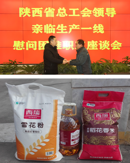 元月7日,陕西省总工会农林气象工会惠小峰副主席在陕西省储备粮管理集团工会主席、纪委书记郭建刚的陪同下,亲临陕西粮农杨凌储备库秋粮收购一线慰问了公司困难职工,将慰问金、米面油等工会的温暖送到困难职工李斌手中,并与公司领导班子、工会主席、委员、贫困职工等进行了座谈,就困难职工扶助、职工权益保护、工会活动开展和职工文化阵地建设等议题进行了深入交流。