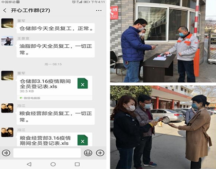 全面复工复产一周以来,各项业务随着人员到岗全面推动,办公、生产区又呈现了往日的繁忙景象,与往年不同的是所有人员均佩戴口罩,人与人之间间距保持1米以上,分别在各检测点接受测温、扫码、登记后有序进入办公、生产区,并加强对农民工和临时工的管理和教育,杜绝聚集及在库区随意走动。粮油保防人员采取错峰上班管理方式,由部门根据客户工作需求,安排组织生产;公司办公楼人员积极借助有限的线上办公手段,尽可能减少人员接触式办公。全库干部职工谨慎自我防控而又以饱满的精神面貌开展工作。