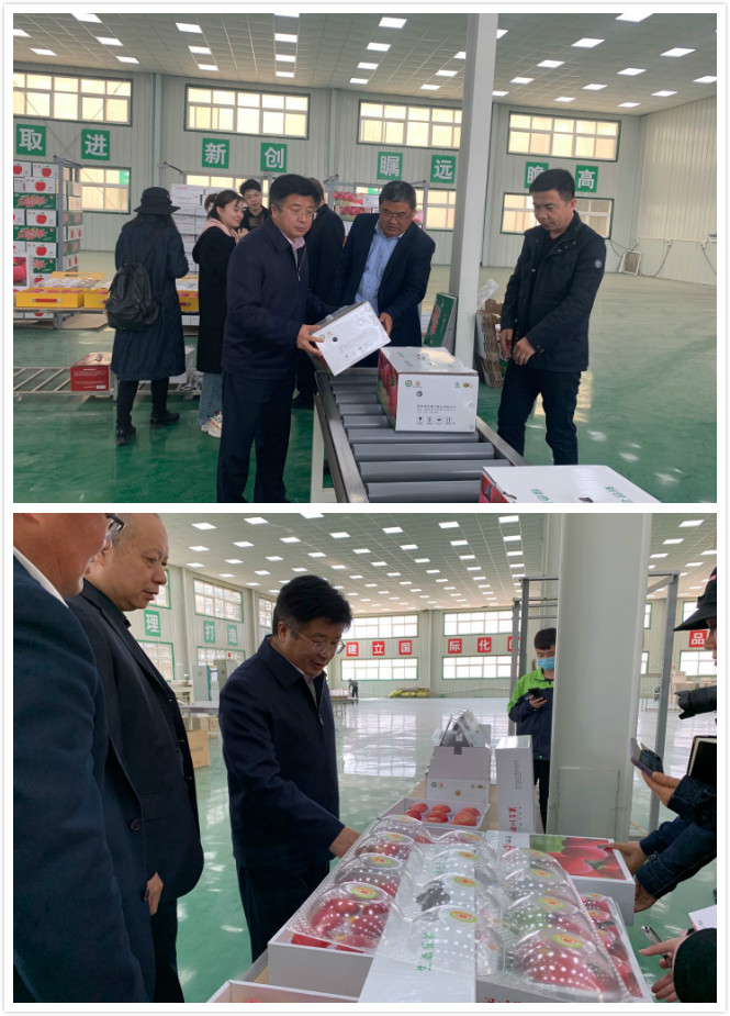 王书记一行了解了我公司存储的苹果数量、品质状况,察看了正在生产的苹果包装加工生产线,对我公司专业化库存管理和加工生产能力表示了肯定。听取了我公司在苹果收购过程中为确保果农利益进行合理定价;针对果农存果难、销售缓慢等问题,公司与当地政府协商出台了分级分价收购政策;对贫困户苹果进行免费库存等收购工作的汇报。王书记对我公司在苹果购销过程中积极与政府沟通,解决果农存果难、卖果难方面做出的贡献给予高度赞扬。并表示洛川政府及各部门,将会为公司发展做好服务,提供政策支持,希望我公司在今后的发展中发挥好“洛川苹果”的品牌优势进一步拓展经营规模,提高果农收入,并充分利用自身优势,维护市场稳定,发挥国企社会担当,进一步将公司做大做强做优,实现行业示范引领,为助推当地产业发展做出更大的贡献。