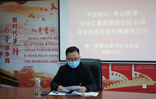 支部书记以“不忘初心 牢记使命,坚决打赢疫情防控阻击战,有效发挥党员先锋模范作用”为主题,为我公司党员干部们讲了一堂生动的党课。