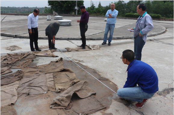 5月8日,扶风库公司对主库区内塌陷路面处理工作进行丈量检查。