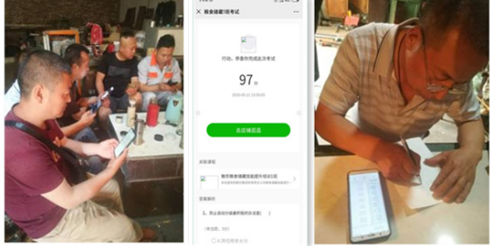 这次培训共开设职业素养、疫情防护、爱国主义教育、职业道德、党性修养、工匠精神、粮食储存等48节课程。自4月30日开课以来,学员们都能够认真学习,扎实做好学习笔记,只要有闲暇片段时间,就拿出手机观看教学视频。尤其是机电班学员许建平、姜兴茂、安保部刘国庆、惠伟峰都已近60岁快到了退休年龄,依然能够坚持每天线上学习打卡,线下讨论交流,用饱满的热情汲取知识,丰富内涵。