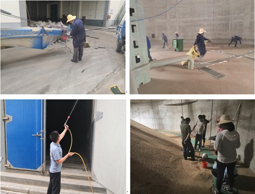 设施器械的准备工作由公司仓储科和武功分公司承担,一是对库区内所有仓房进行统计,制定新粮的存储计划,及时腾仓并库;二是对准备存粮空仓卫生进行全面清理,重点对清理仓内地面、通风地笼、墙壁等处进行仔细清扫,确保不留死角、不留隐患;三是对准备存粮空仓进行消毒,以机械喷雾方式开展空仓杀虫作业。四是由维保班对主库区及武功分公司所有的机械设备进行检修、调试。五是对库存储粮进行全面、细致地检查,及时掌握粮情,制定完善的夏季保管方案。