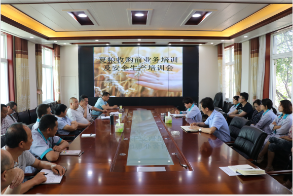 会议上我公司总经理王晓勇指出,各科室、各库区要积极开展业务知识培训工作,不断提升各岗位人员专业知识水平,保证夏粮收购工作的顺利开展。同时,要加强安全教育培训工作,坚持公司安全生产制度,始终把安全工作放在第一位。