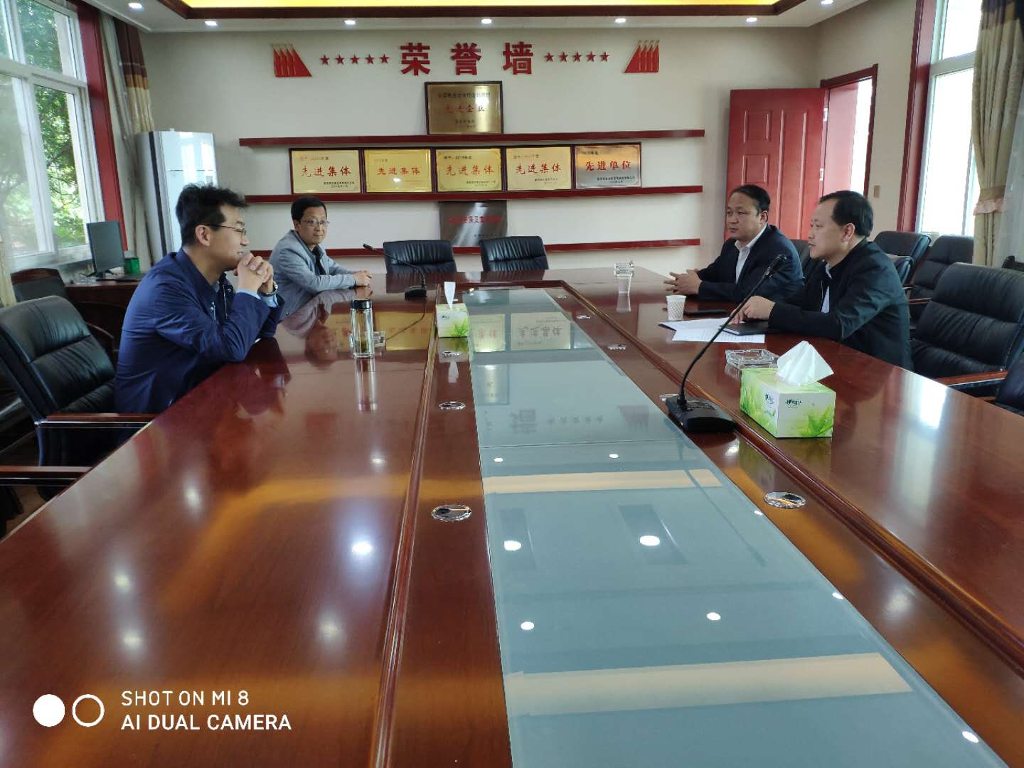 2020年5月26日工商银行扶风县支行孔小强行长,何地科副行长一行莅临扶风储备库公司,商谈银企合作,扶风公司总经理王晓勇、财务科科长李建军等参加会谈。