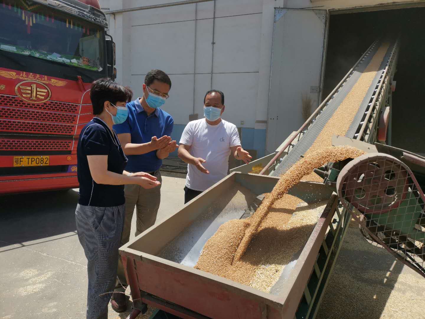 为抢抓机遇开展夏粮贸易收购,我公司于5月21日选派以经营副科长王军、党员白汉江以及青年职工行思成组成的夏收突击队进驻湖北延伸库开展小麦收购,连日来,在租赁库点客户的协助下,几名同志克服条件艰苦,工作强度大等困难,加班加点抢收优质粮源,十天时间累计收购优质小麦2万余吨,为完成今年收购任务打好了基础。他们这种能吃苦,担使命的精神鼓舞了我司全体同志,受到大家一致好评。这次公司主要领导前往湖北,带去了全公司同志的关心和慰问。王书记、申董事长一行在收购库点检查了收购现场和质量,财务负责人检查了收购数量和成本。在对驻库同志慰问的同时,要求他们加强生产安全和防疫措施,鼓励他们再接再厉,善始善终做好收购工作,确保延伸库点圆满完成既定收购任务。