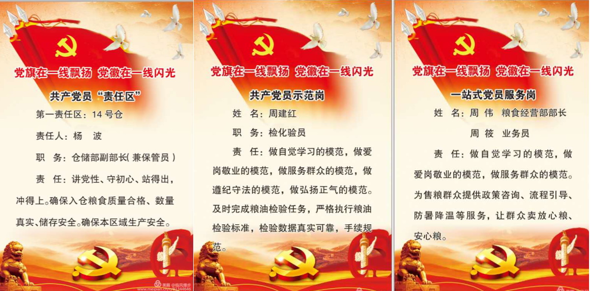 根据陕储粮集团党委在夏粮收购工作中开展,“党旗在一线飘扬,党徽在一线闪光”主题活动的通知精神,为切实做好今年的夏粮收购工作,落实“六保”的重要举措,有力推进企业高质量发展。结合习近平总书记来陕考察重要讲话精神,推进集团党建与中心工作深度融合,充分发挥党组织战斗堡垒作用和党员先锋模范作用,打赢今年夏粮收购攻坚战。汉中库公司党支部、董事会积极周密部署,精心安排,制定详细活动方案。以亮身份,讲党性;亮责任,讲担当;亮岗位,讲奉献为主要内容,组建了省外库点夏粮收购党员穾击队、公司库内夏粮收购卸车入仓党员突击队、夏粮收购卸车入仓青年突击队,设置3个共产党员责任区,在磅房、检化验室、财务部设置了共产党员示范岗,在粮食经营部设置了一站式党员服务岗。